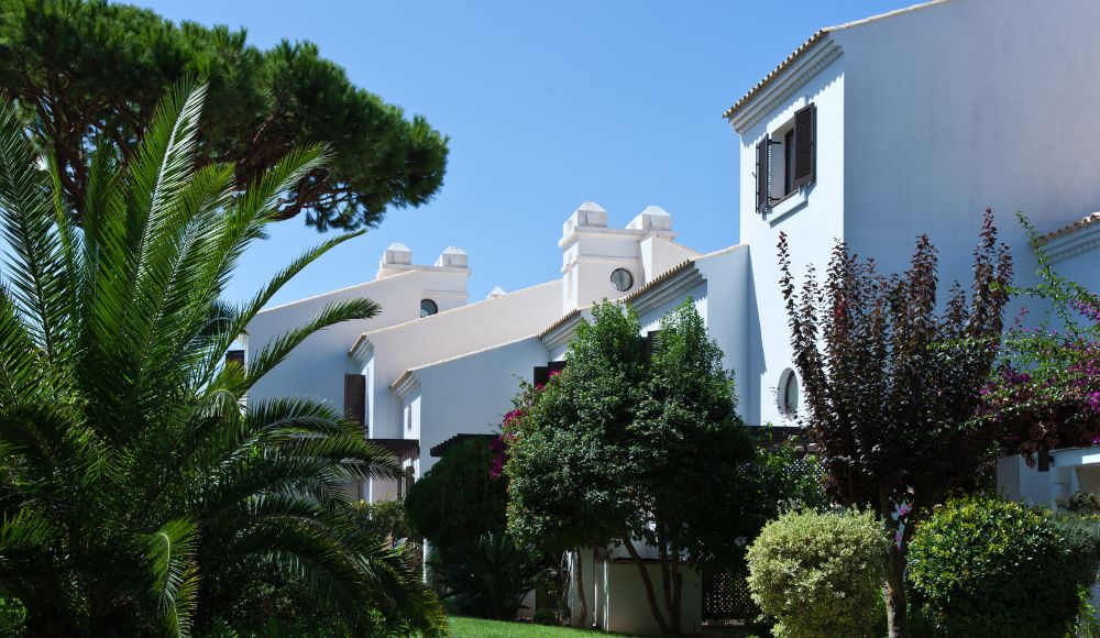 Visão geral: Oferece estúdios e suites contemporâneos rodeados por jardins, ideais para estadias mais longas perto do centro da cidade de Alvor.